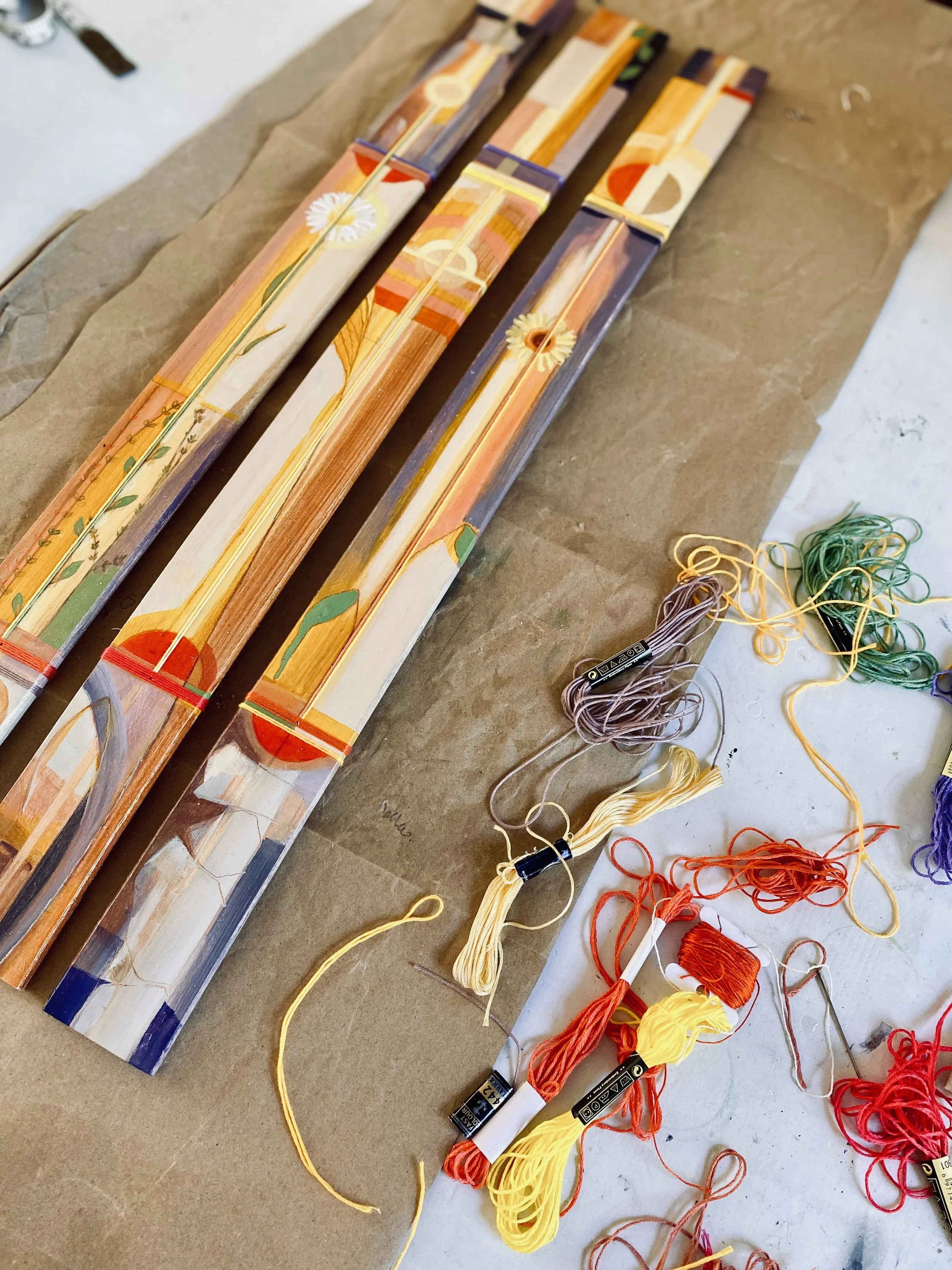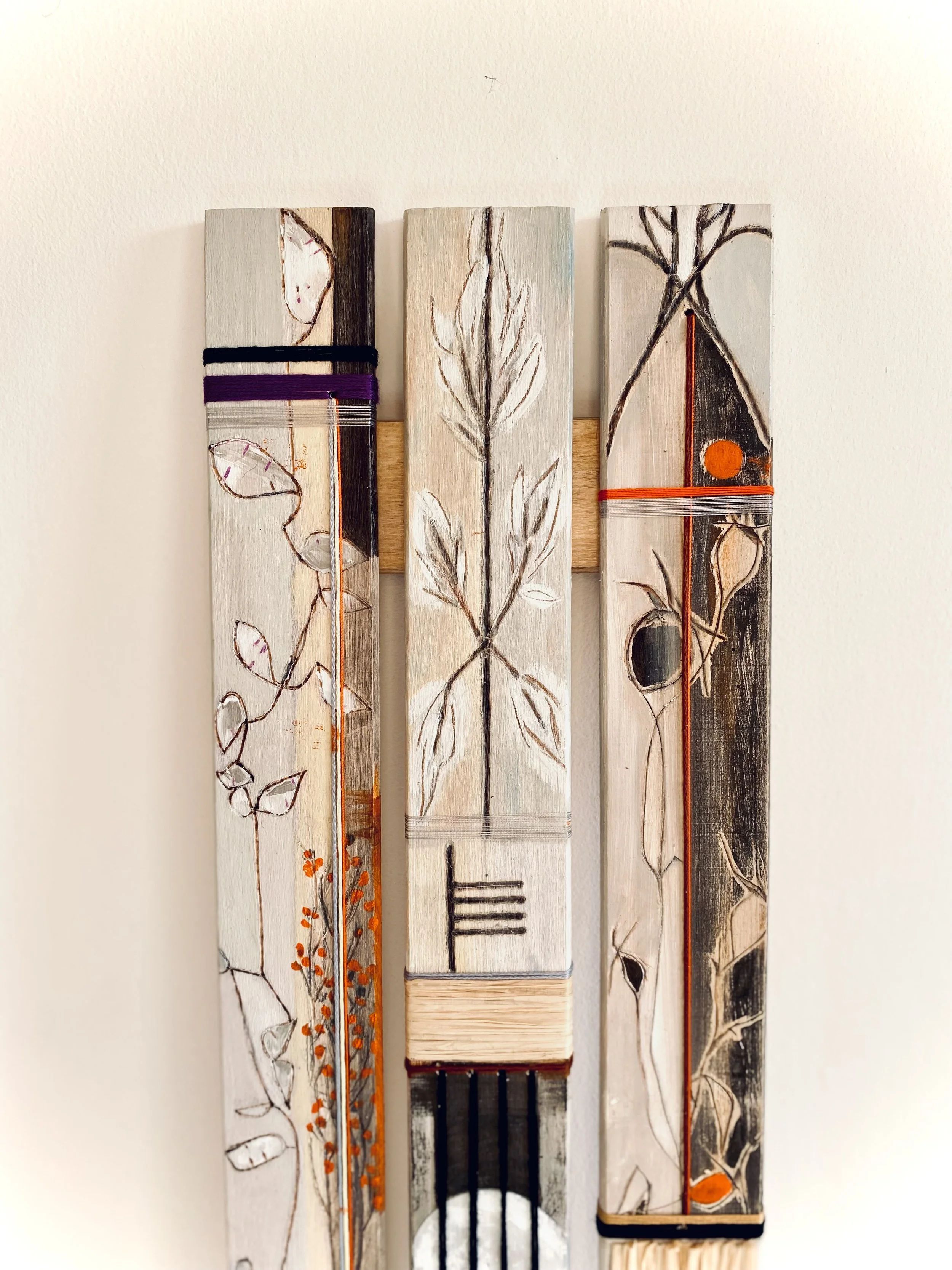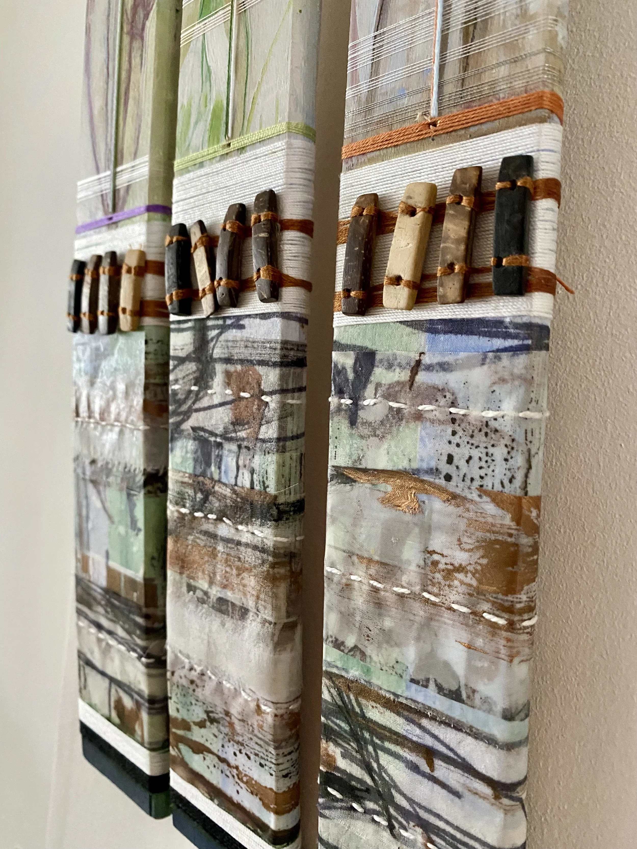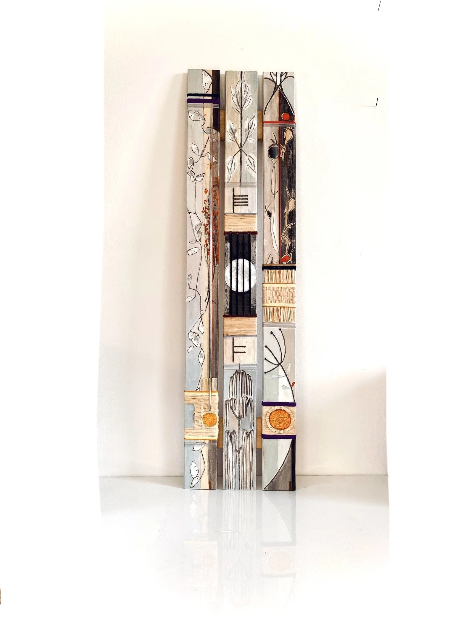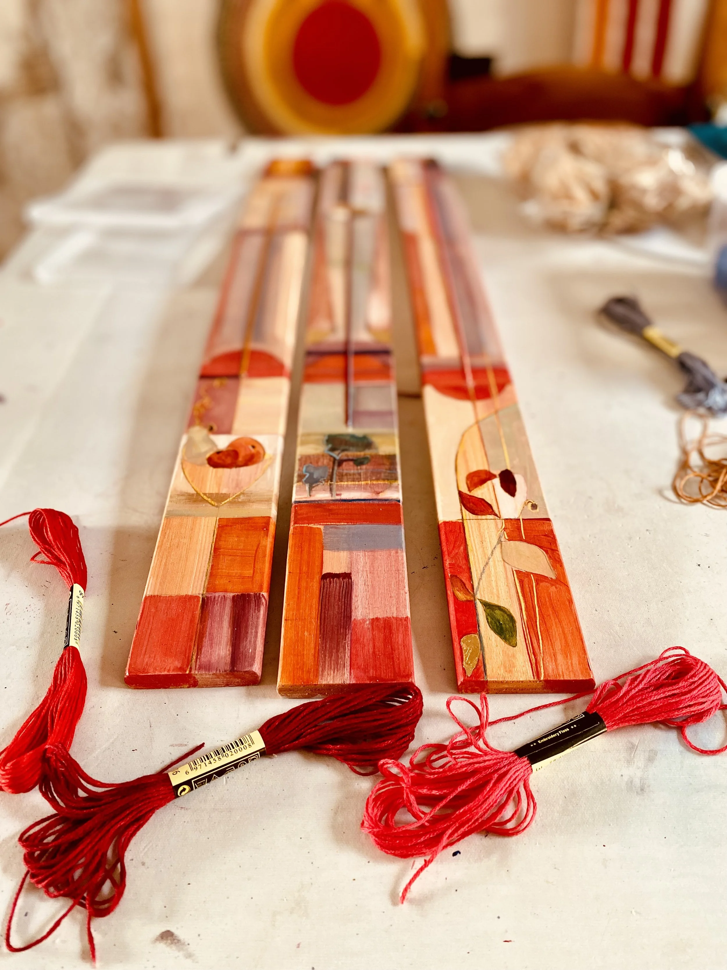 Welcome! I create hand-painted, hand-stitched artworks that weave together reclaimed materials, natures cycles and human stories. Each piece is a tactile reminder of the quiet beauty we find when we connect with earths landscapes. Designed for places that value sustainability, individuality, and soulful decor.