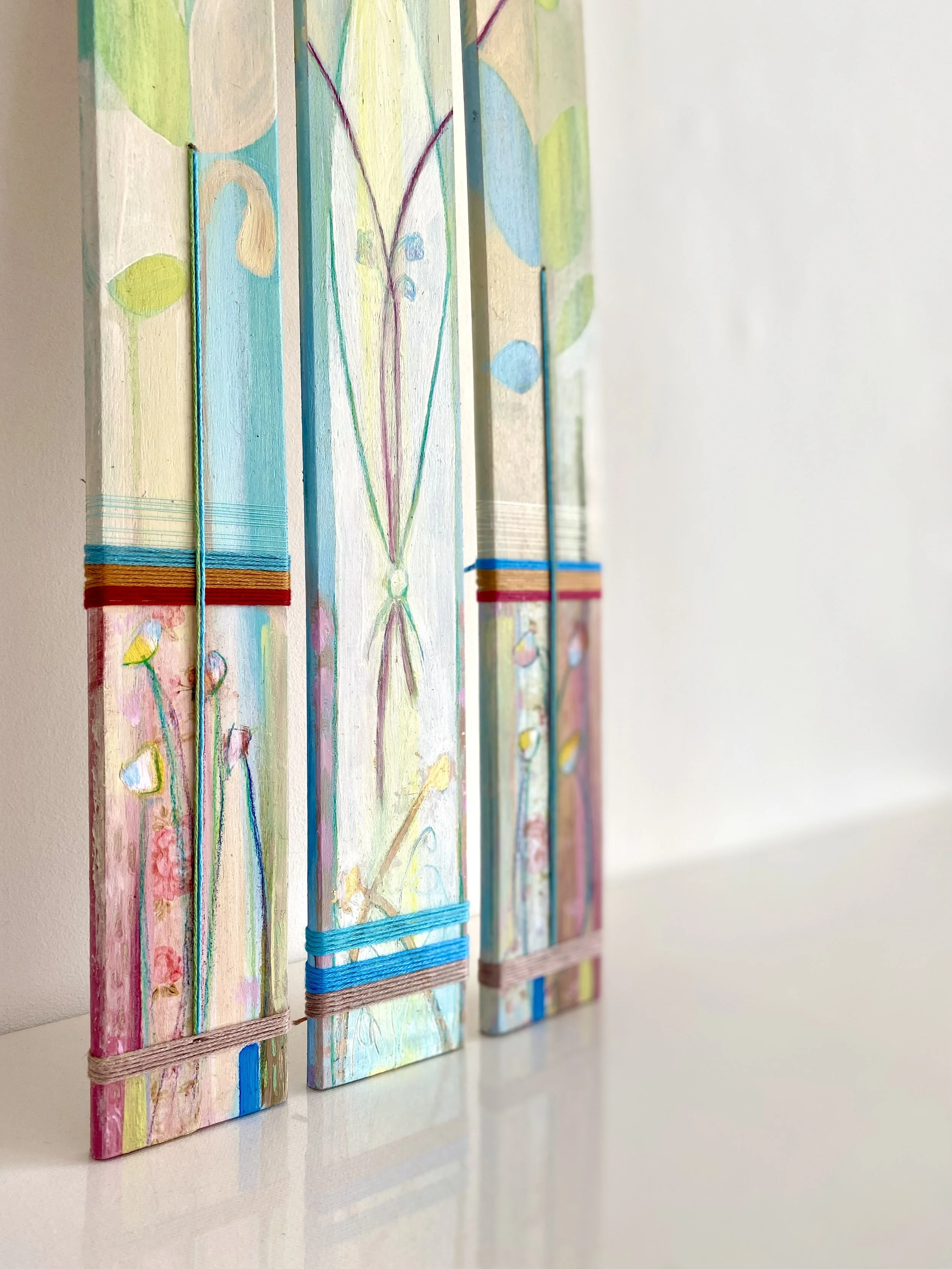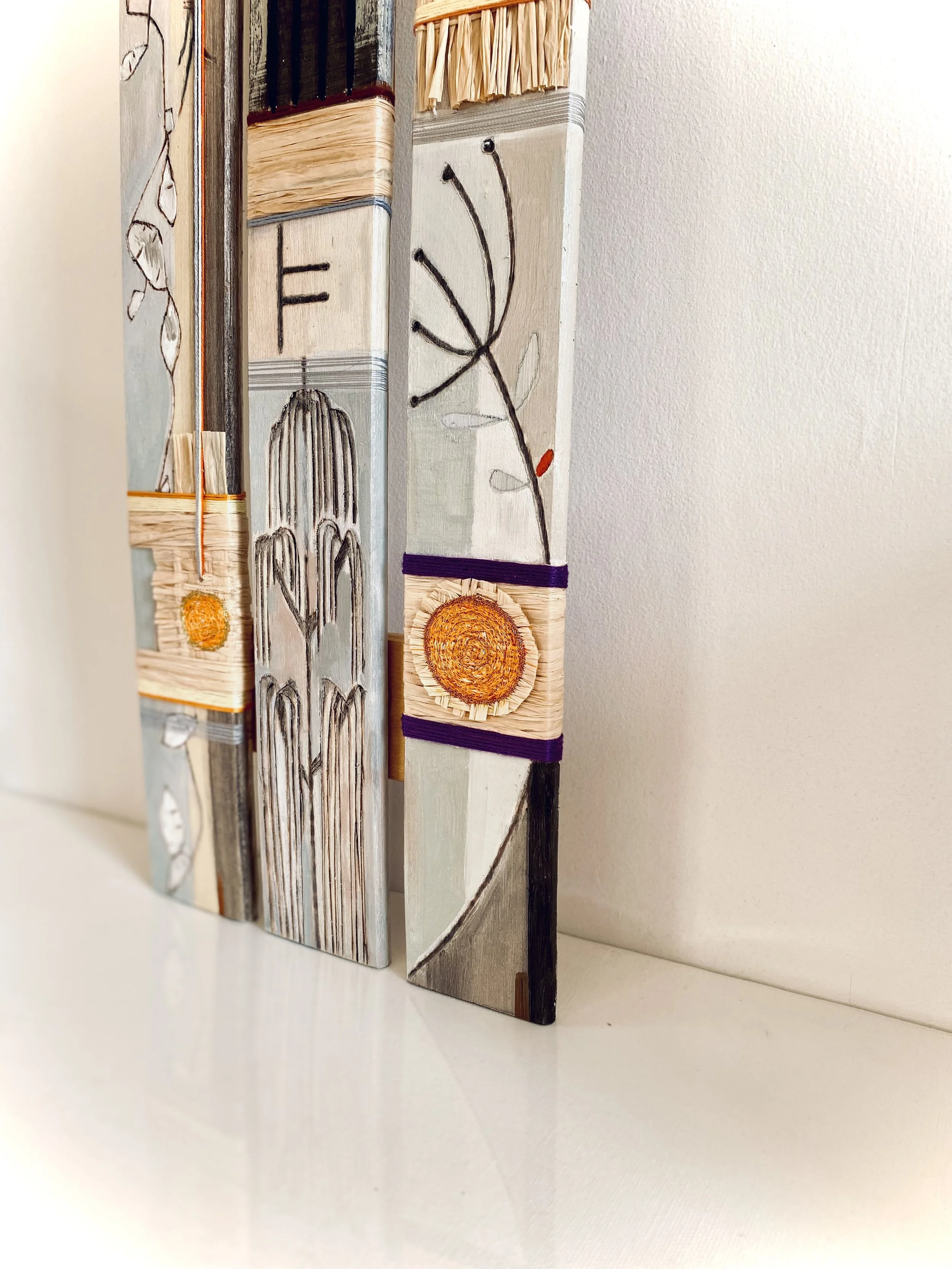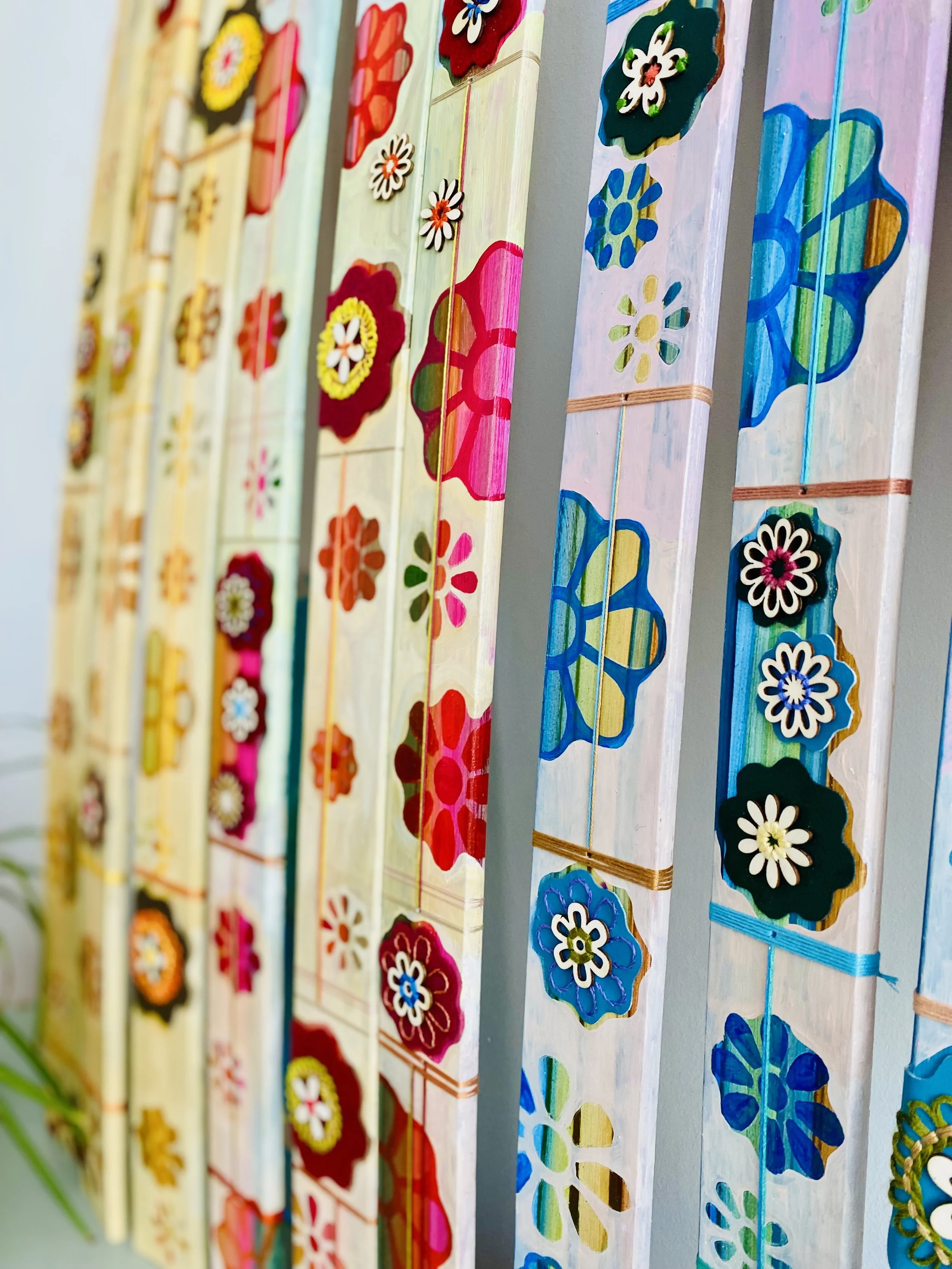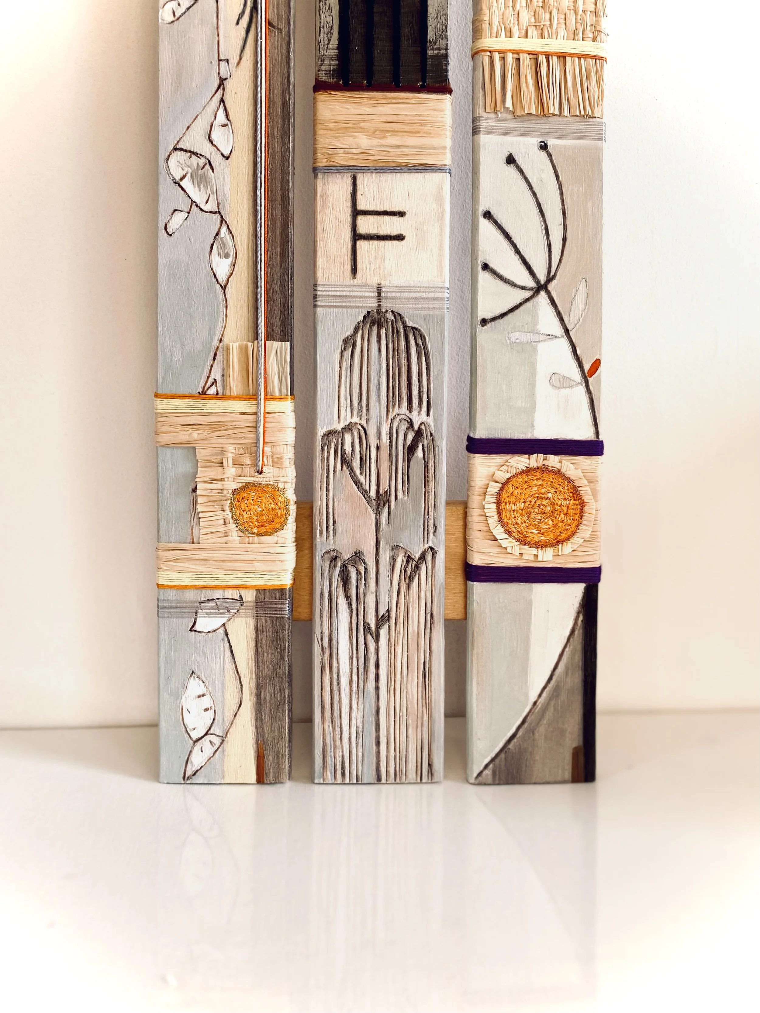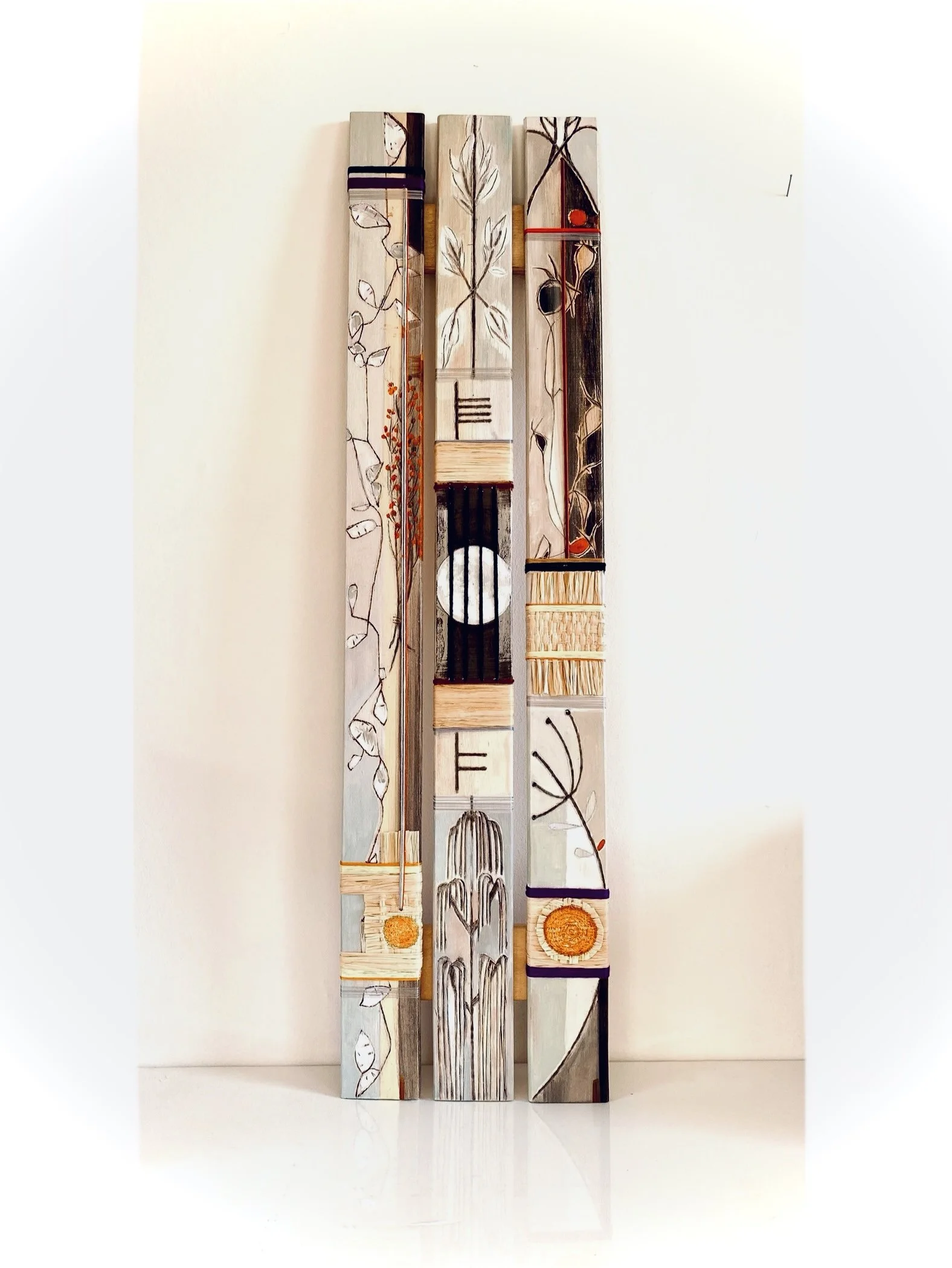Welcome! I create hand-painted, hand-stitched artworks that weave together reclaimed materials, natures cycles and human stories. Each piece is a tactile reminder of the quiet beauty we find when we connect with earths landscapes. Designed for places that value sustainability, individuality, and soulful decor.