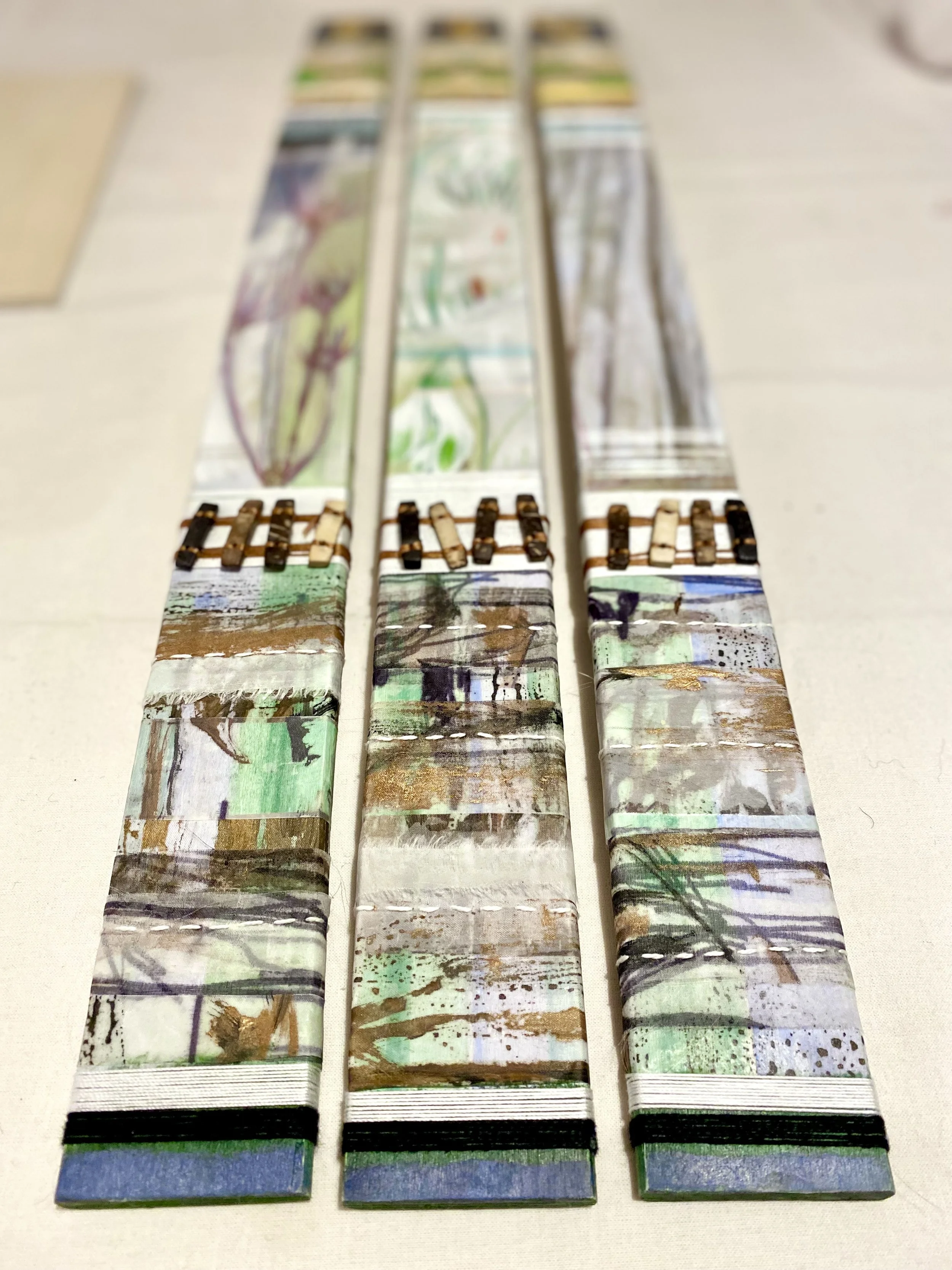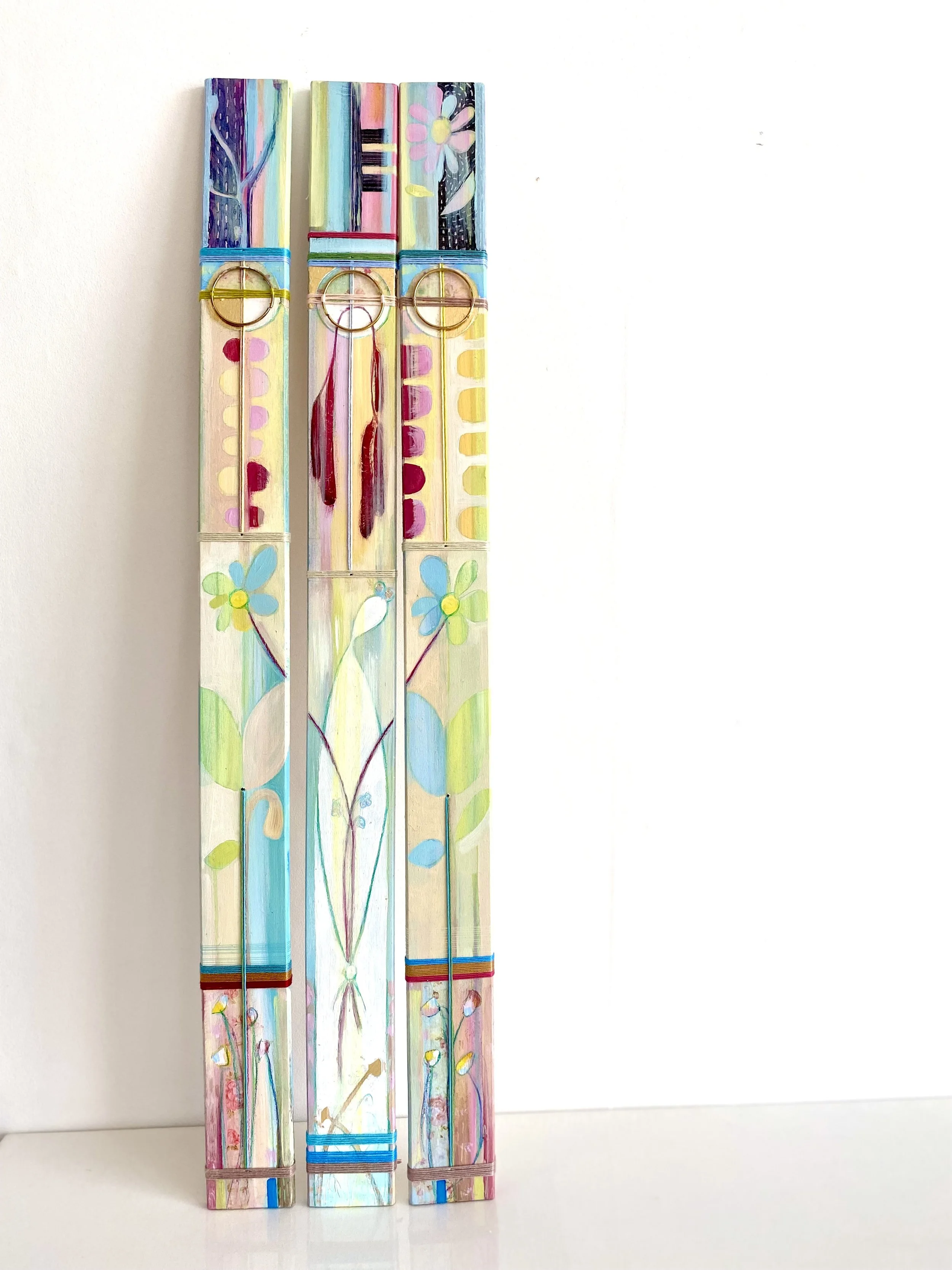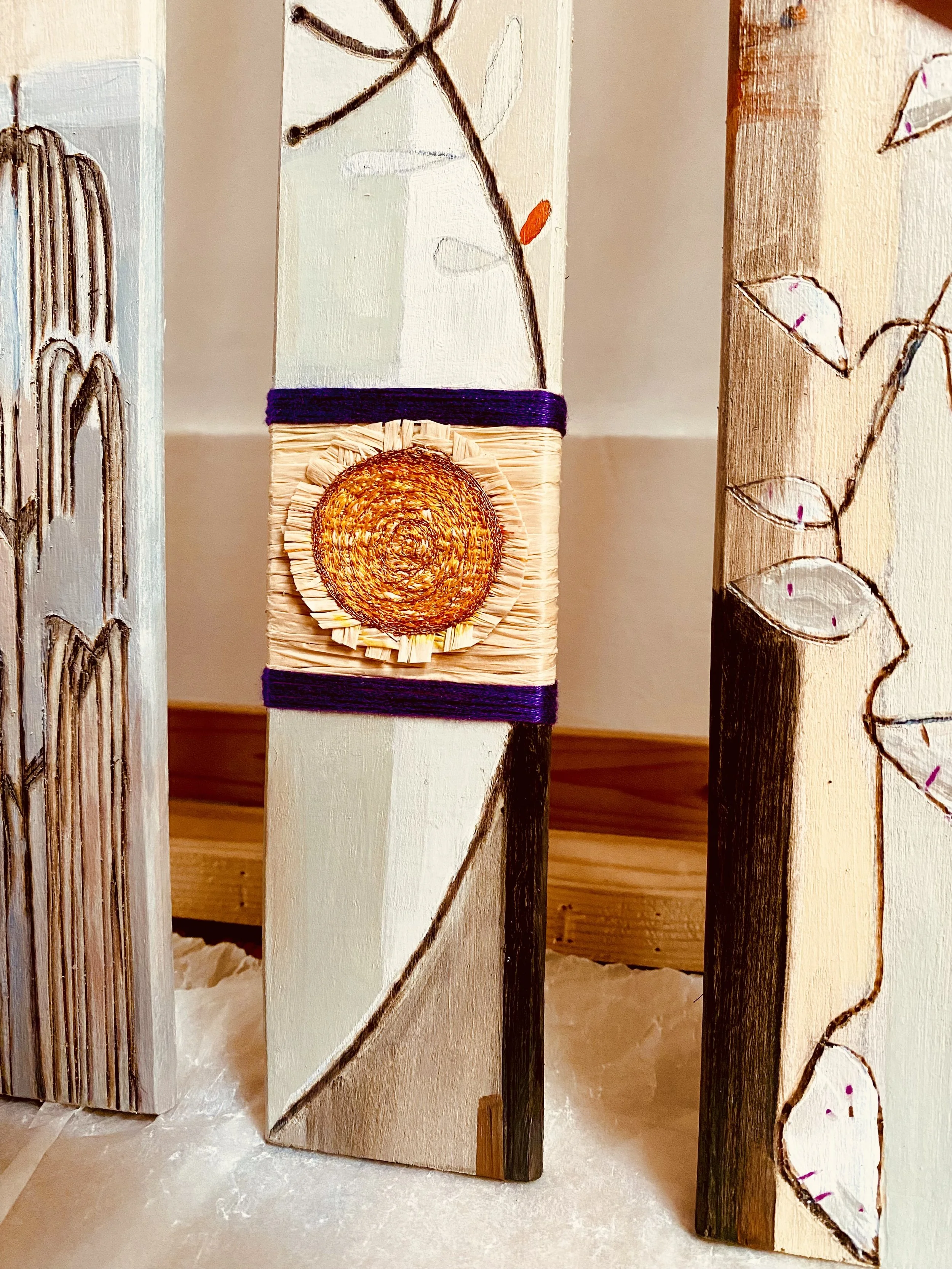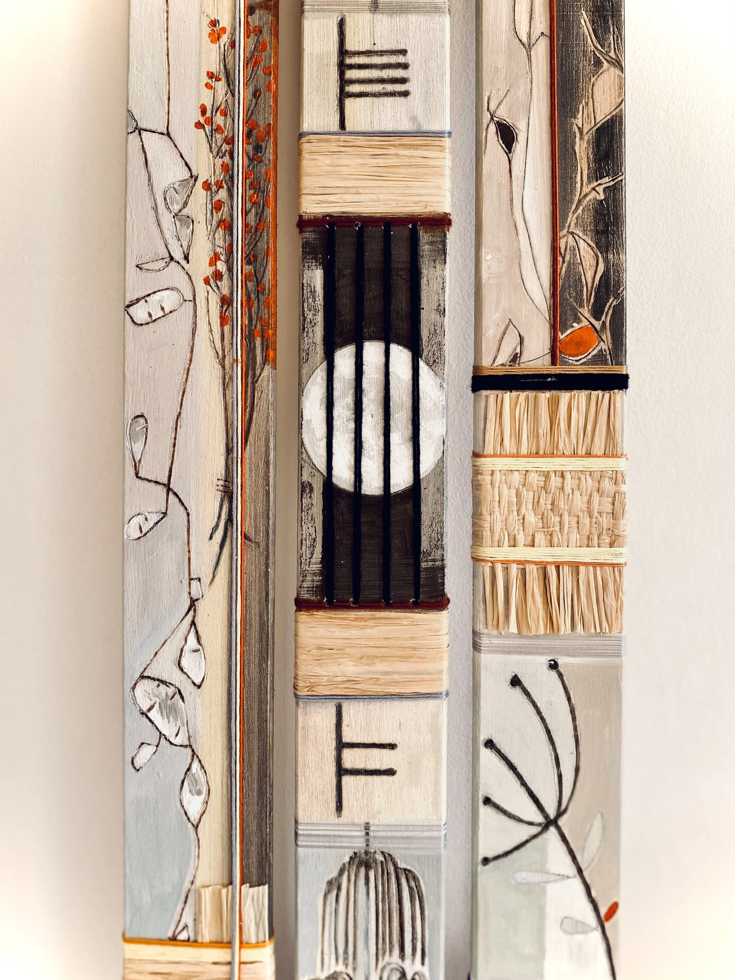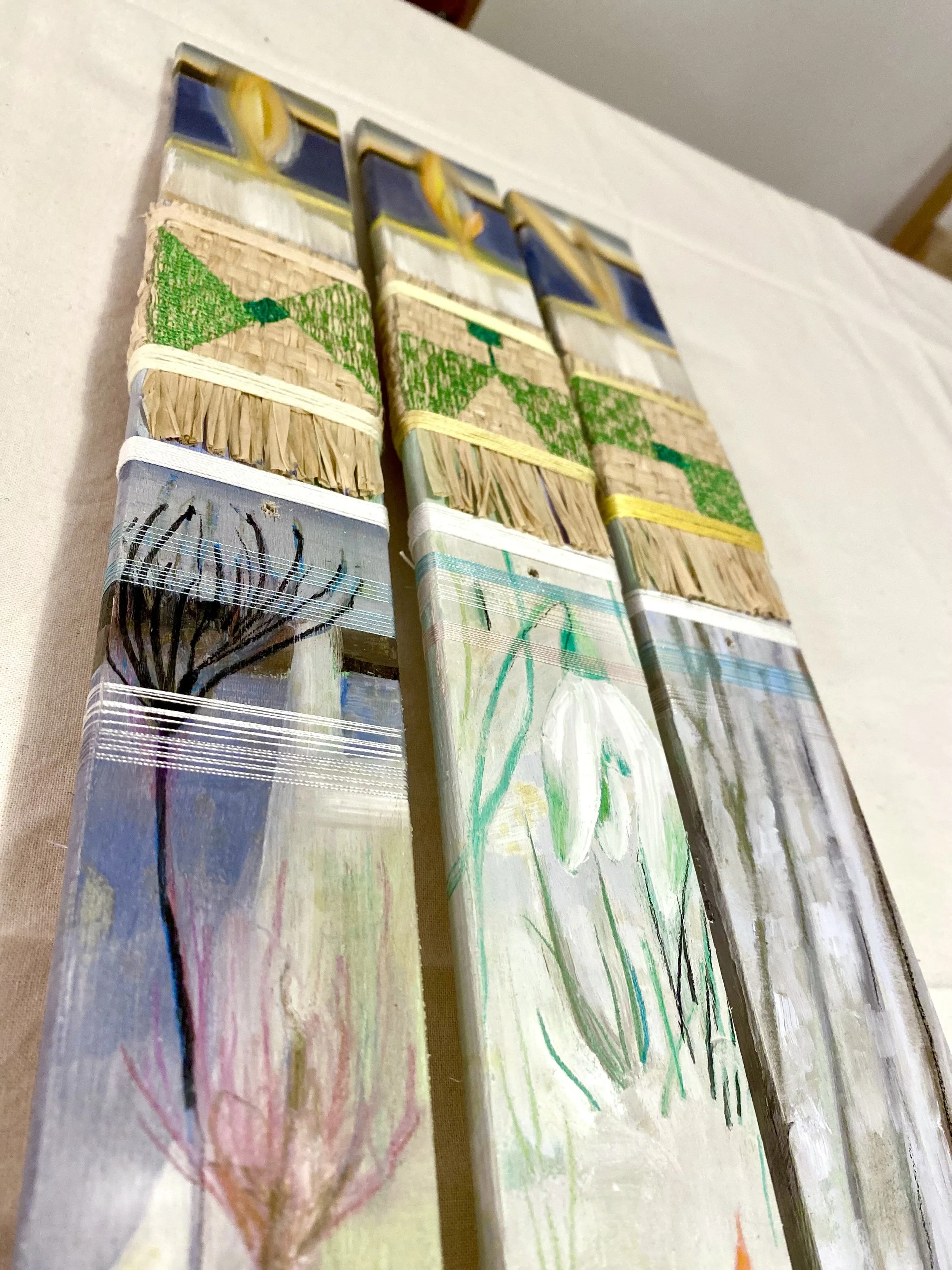Welcome! I create hand-painted, hand-stitched artworks that weave together reclaimed materials, natures cycles and human stories. Each piece is a tactile reminder of the quiet beauty we find when we connect with earths landscapes. Designed for places that value sustainability, individuality, and soulful decor.