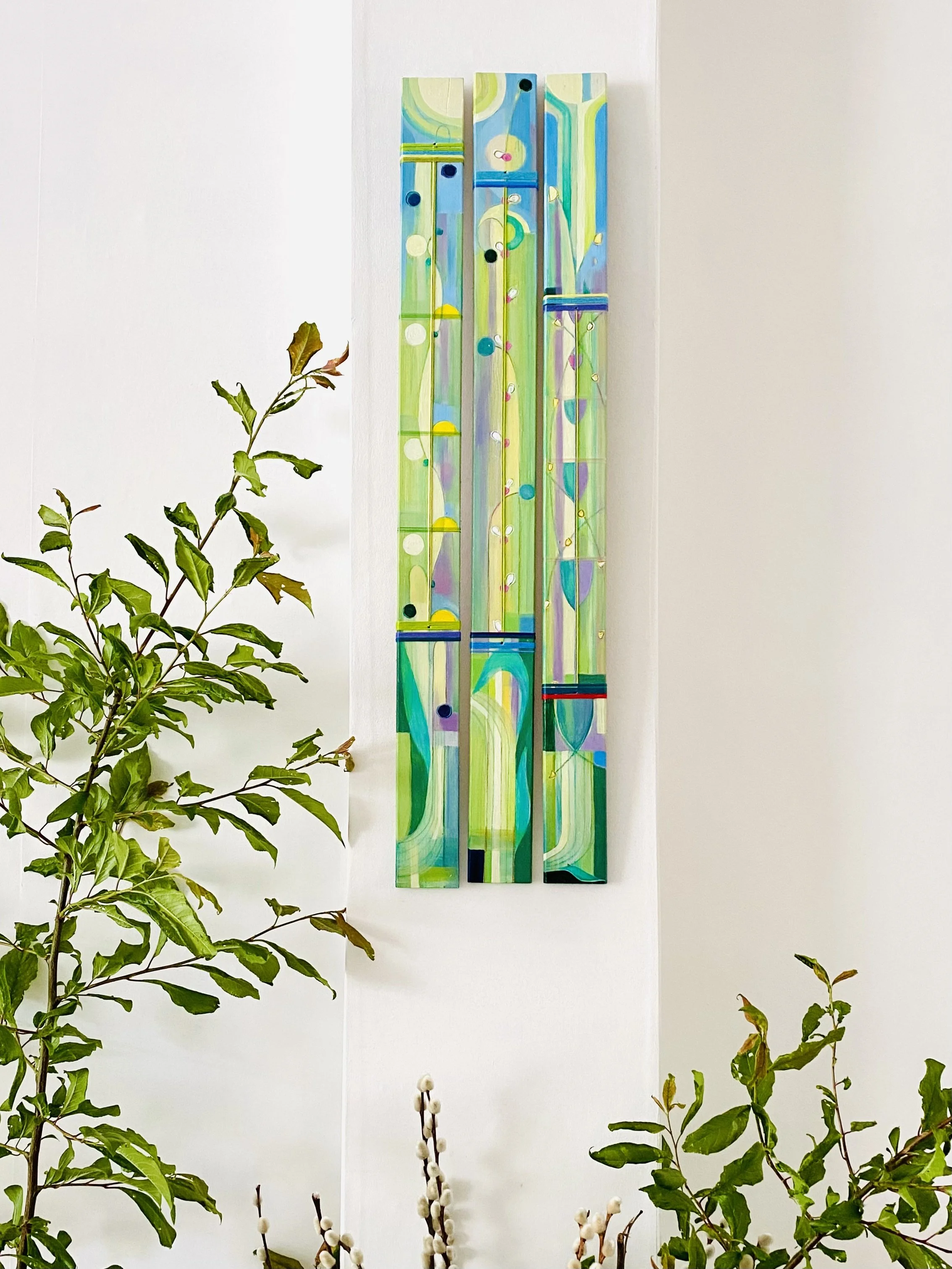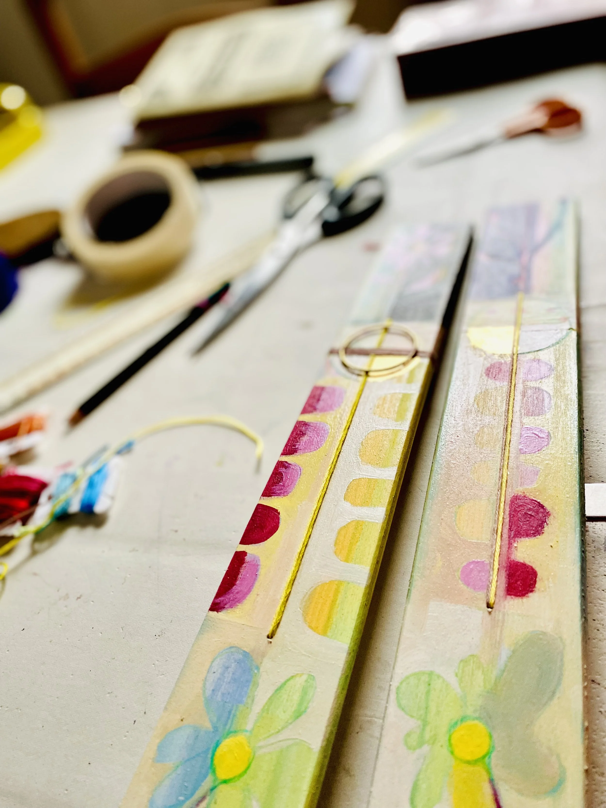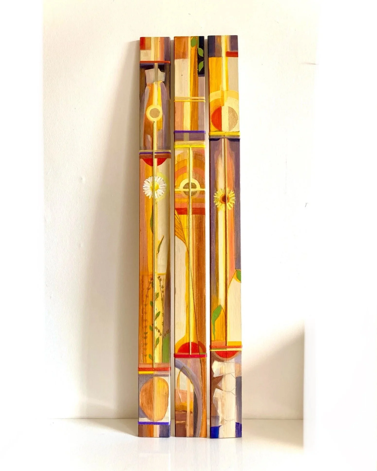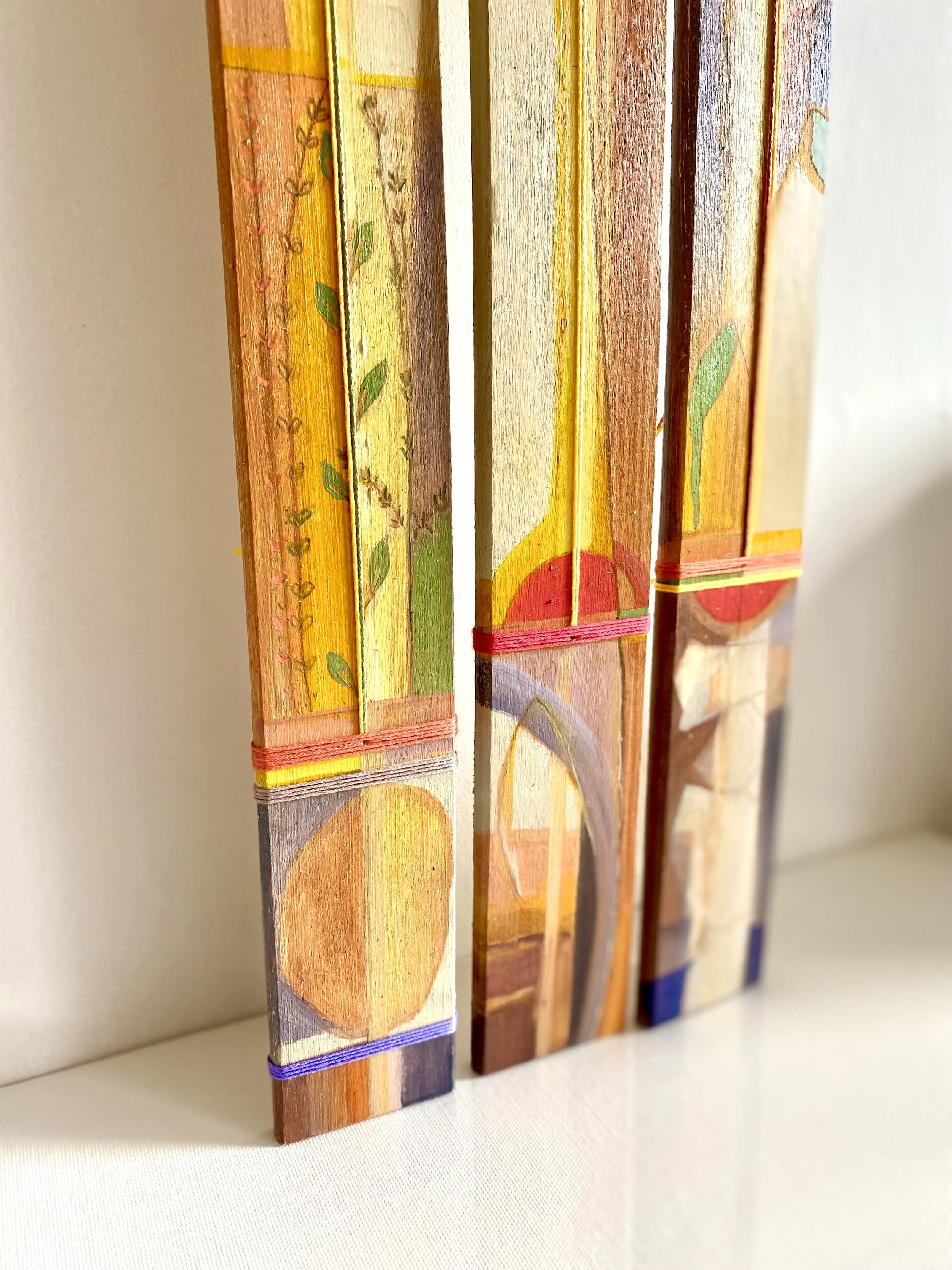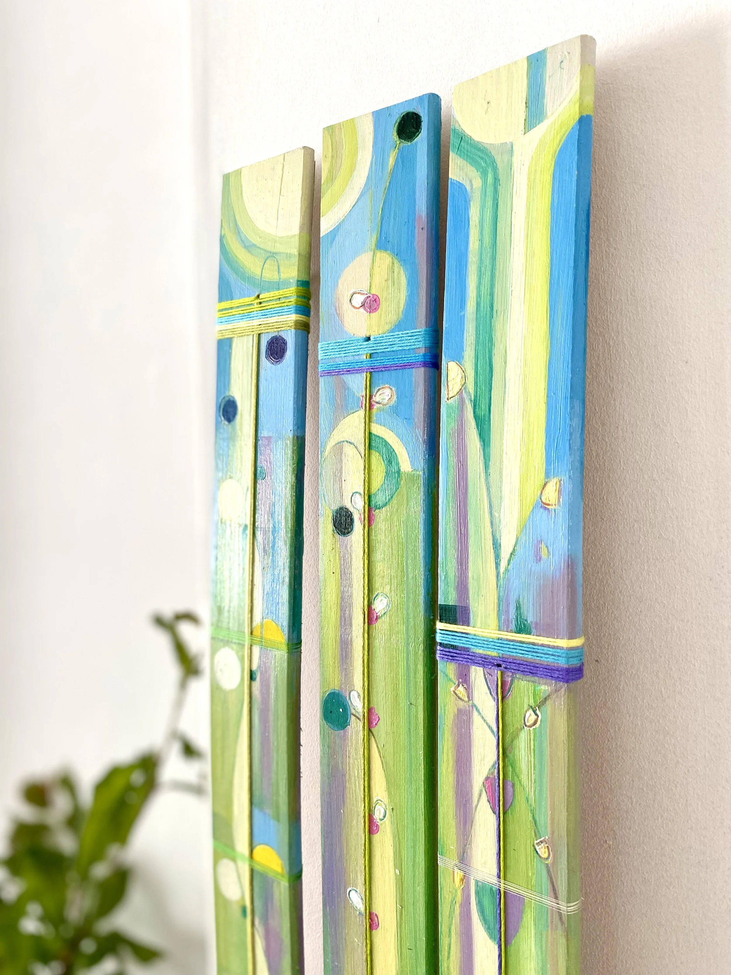 Welcome! I create hand-painted, hand-stitched artworks that weave together reclaimed materials, natures cycles and human stories. Each piece is a tactile reminder of the quiet beauty we find when we connect with earths landscapes. Designed for places that value sustainability, individuality, and soulful decor.