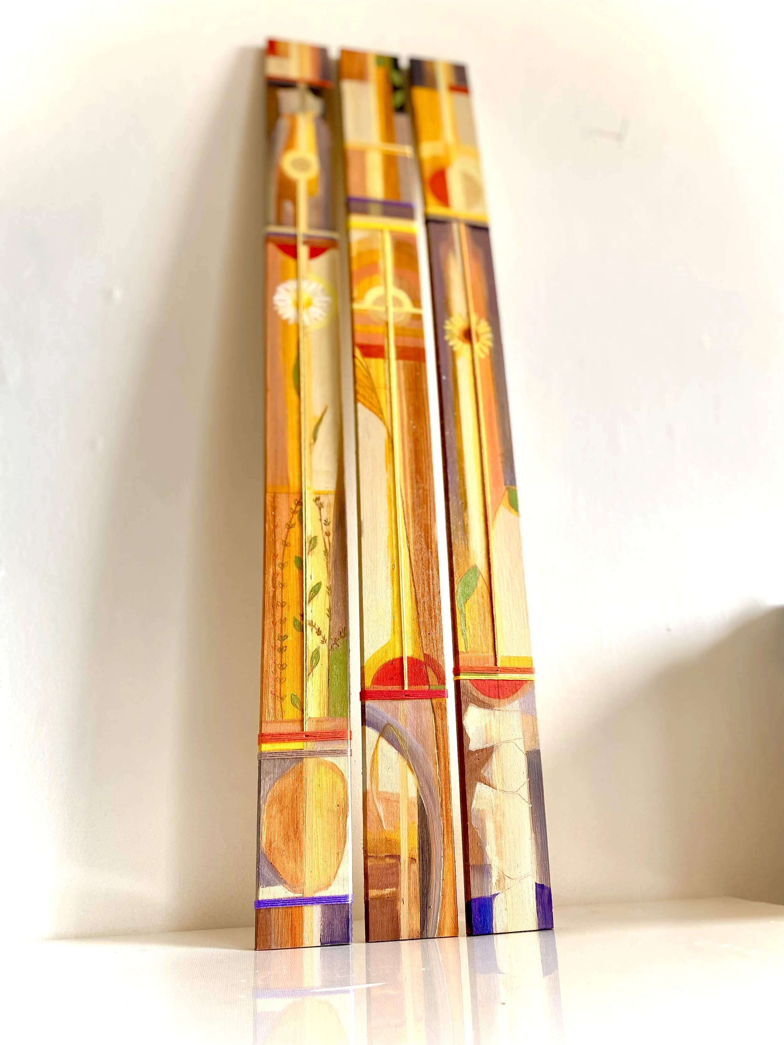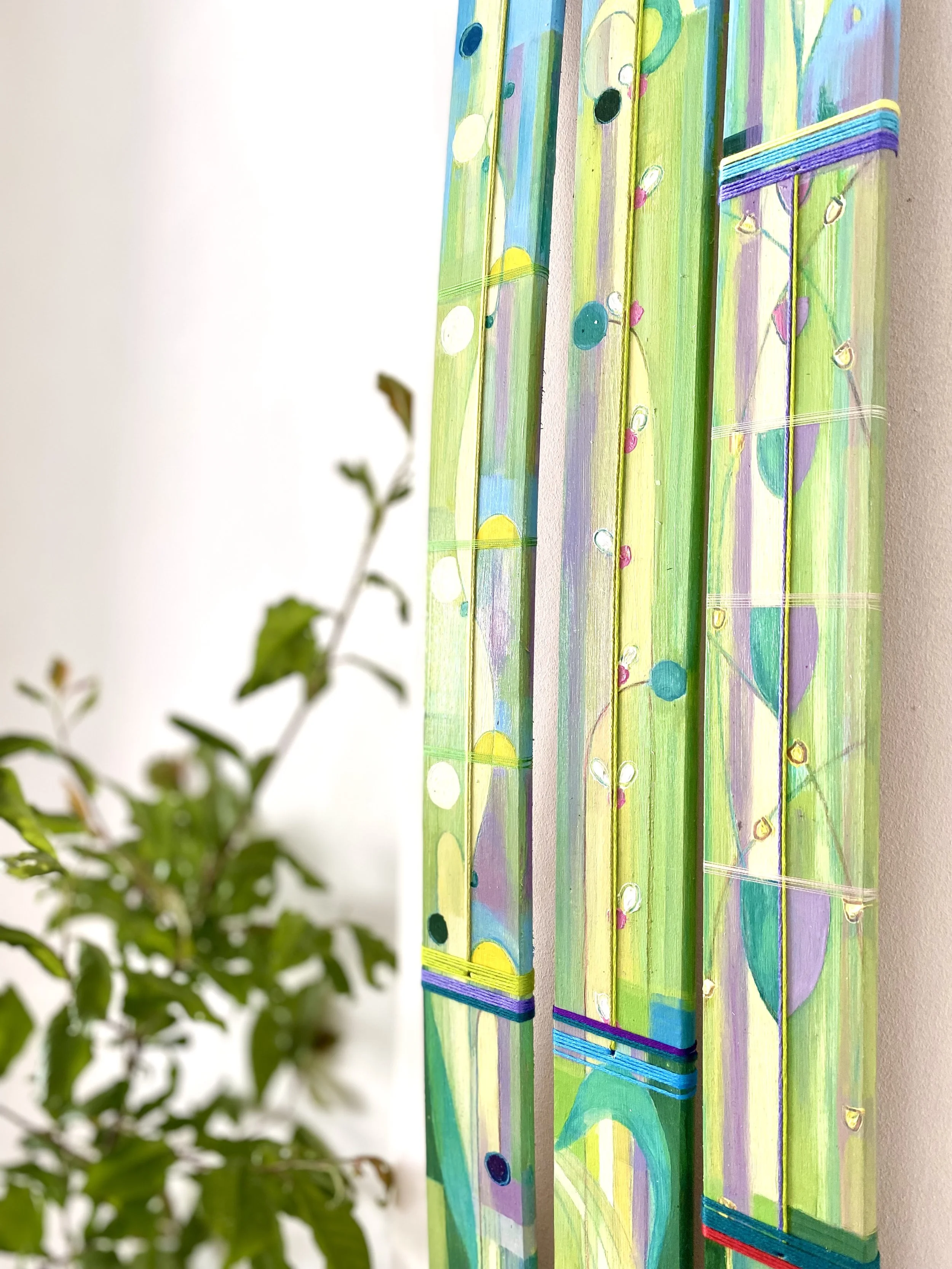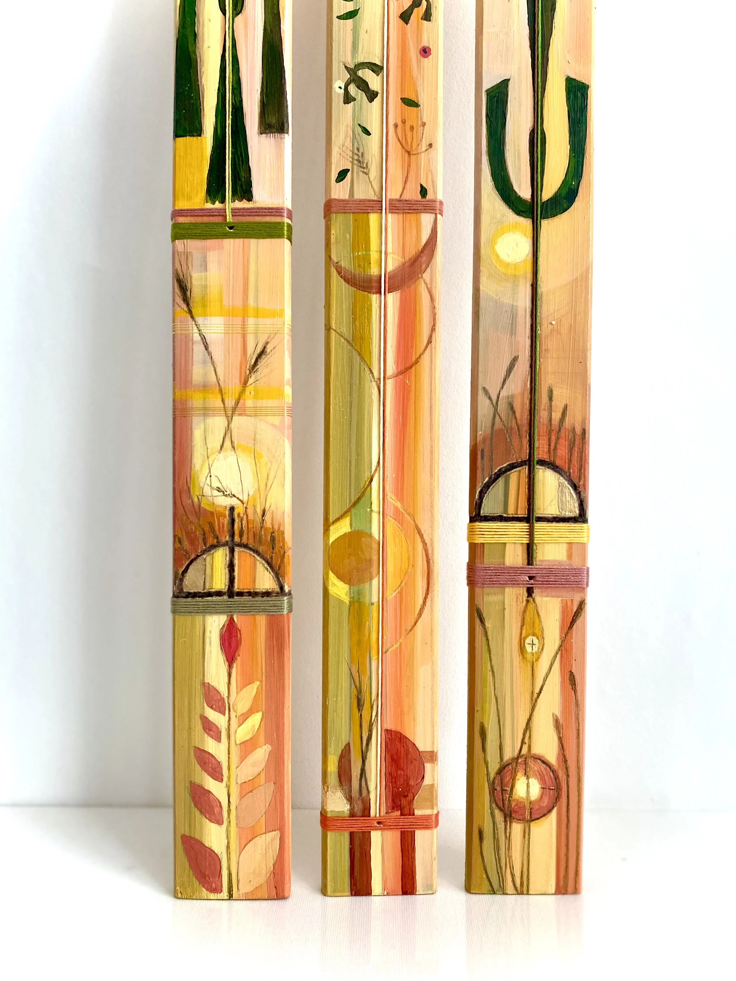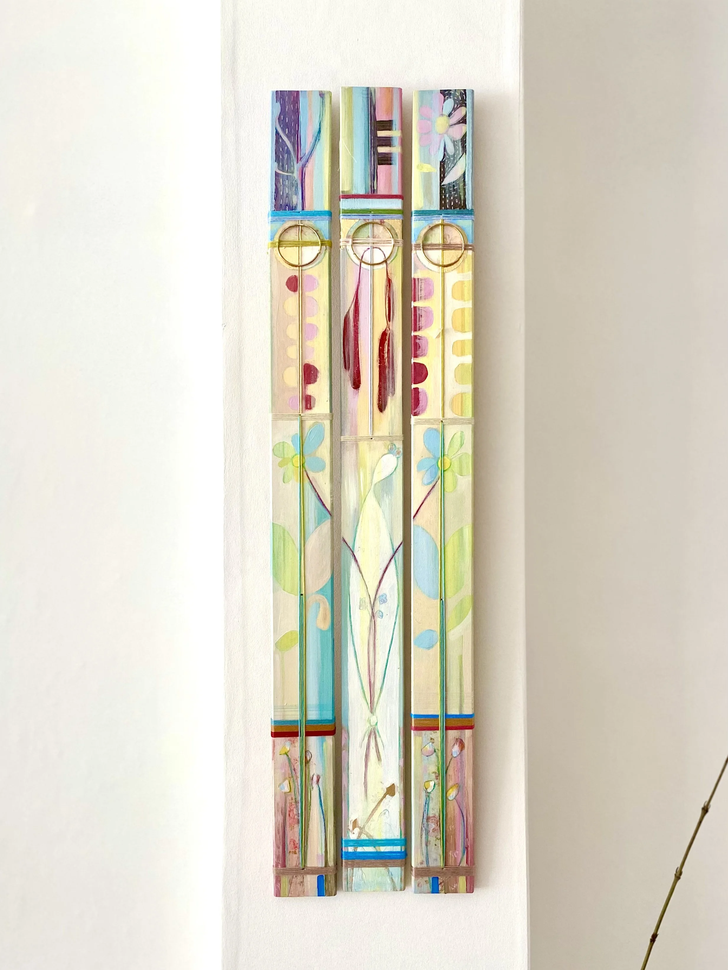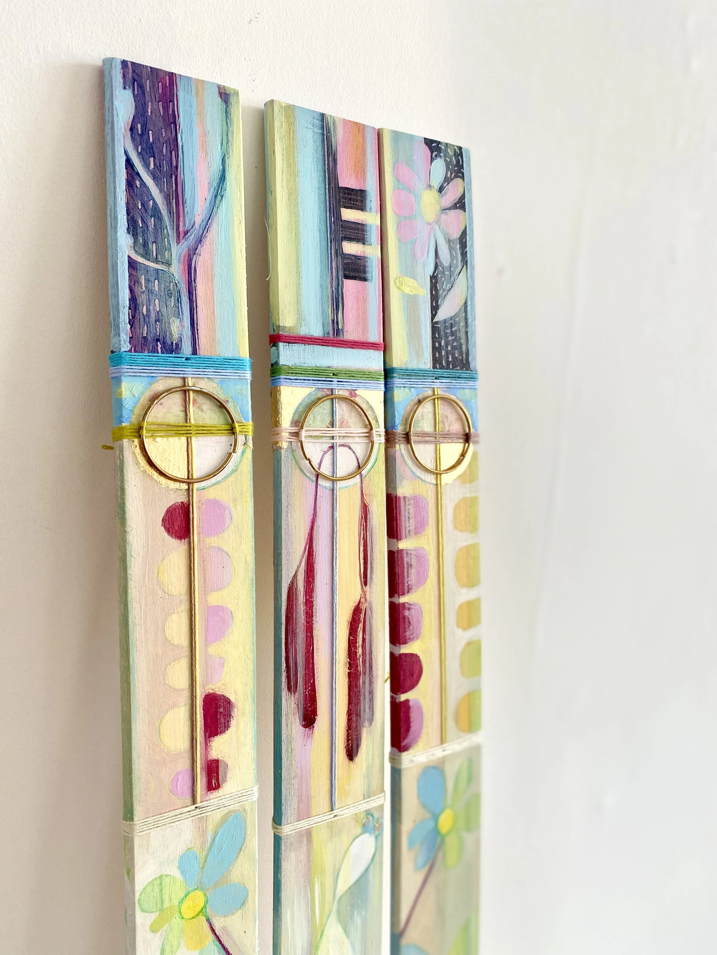 Welcome! I create hand-painted, hand-stitched artworks that weave together reclaimed materials, natures cycles and human stories. Each piece is a tactile reminder of the quiet beauty we find when we connect with earths landscapes. Designed for places that value sustainability, individuality, and soulful decor.