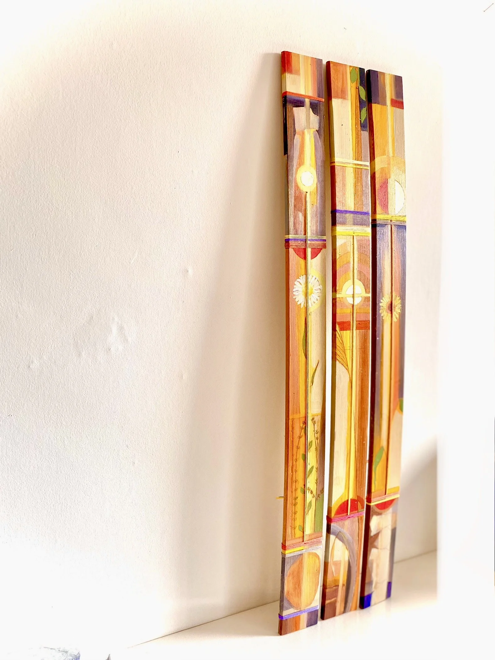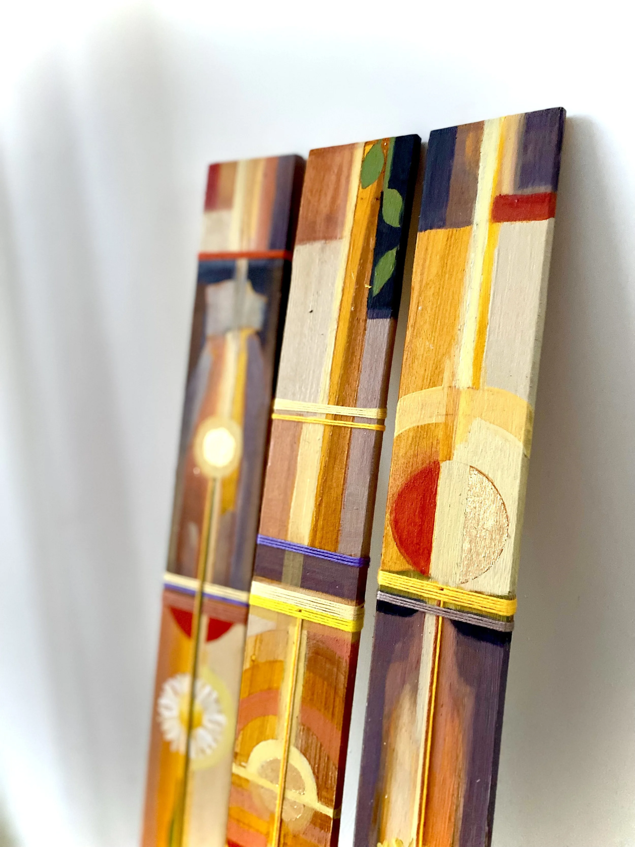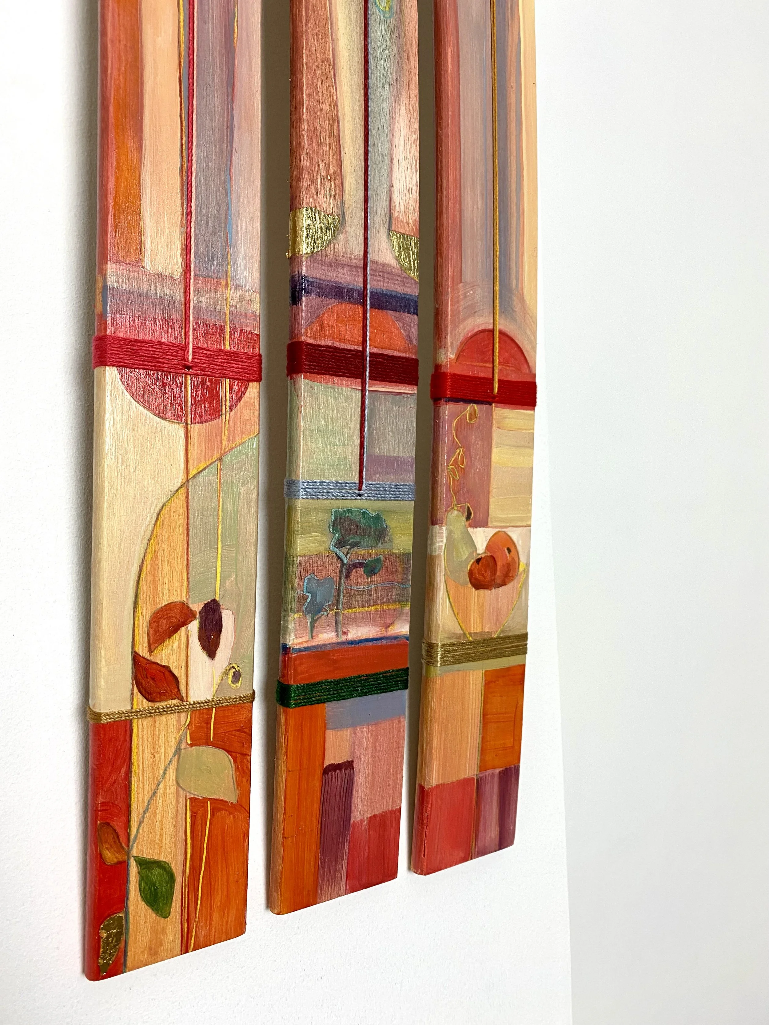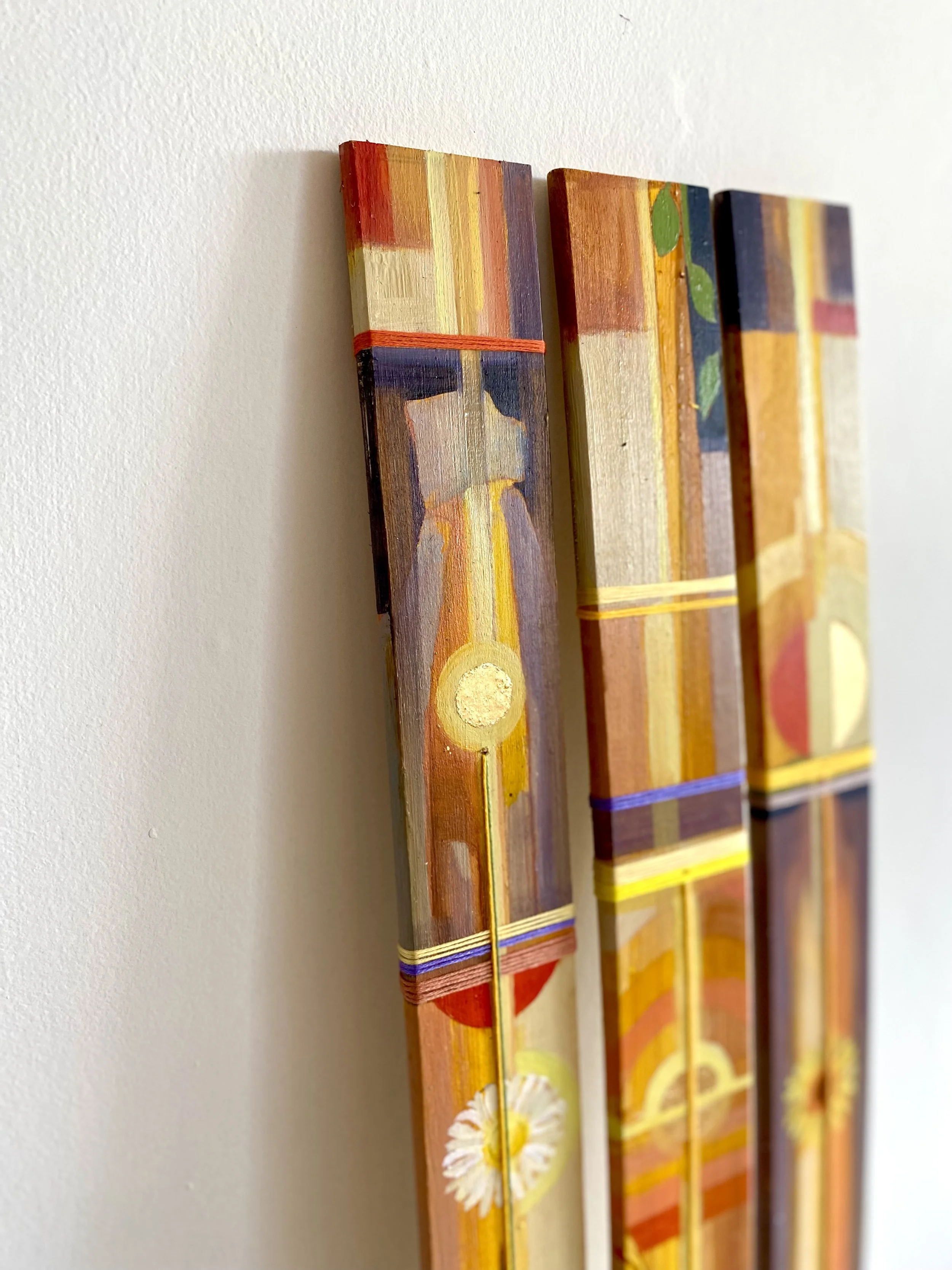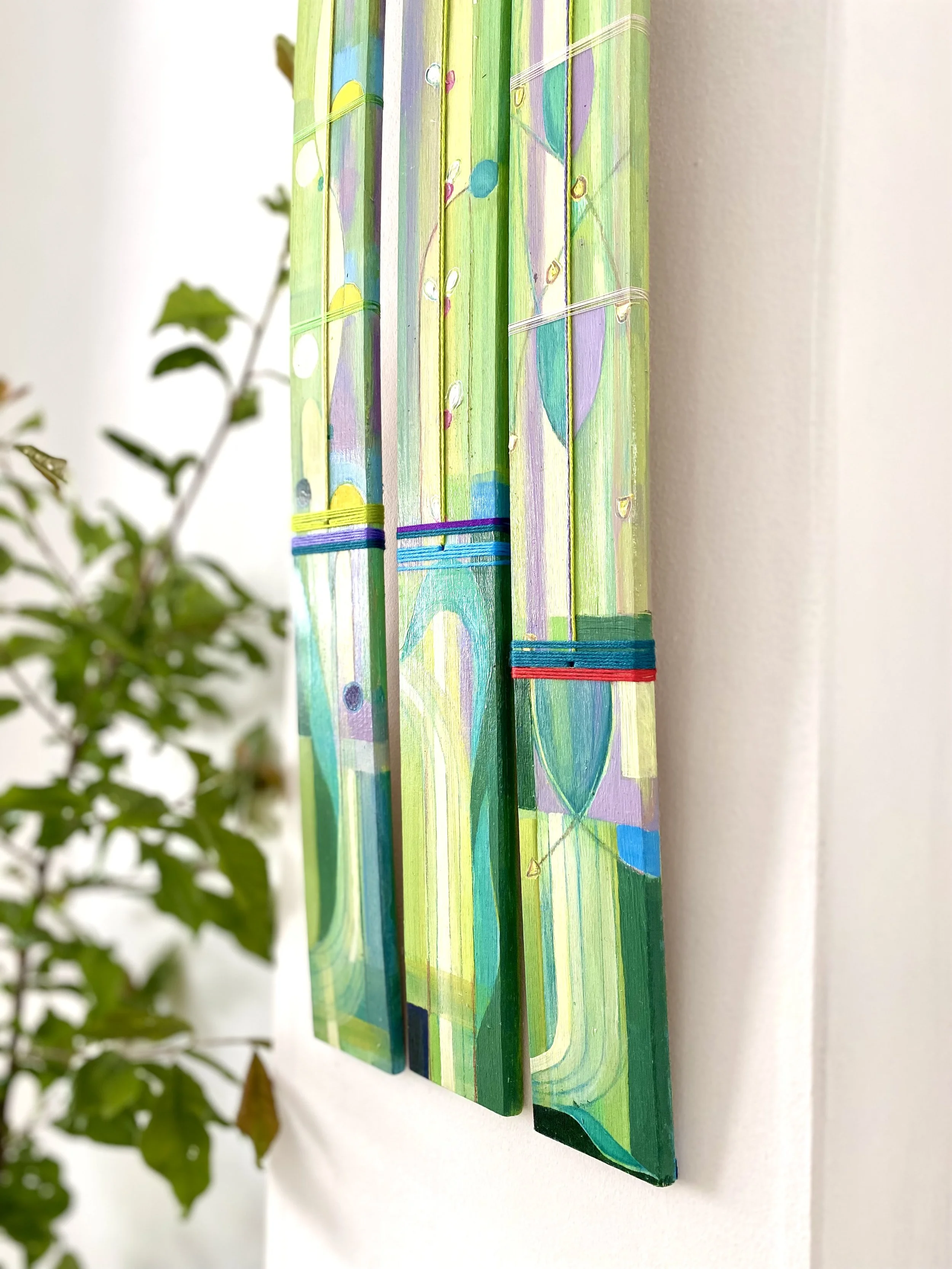 Welcome! I create hand-painted, hand-stitched artworks that weave together reclaimed materials, natures cycles and human stories. Each piece is a tactile reminder of the quiet beauty we find when we connect with earths landscapes. Designed for places that value sustainability, individuality, and soulful decor.