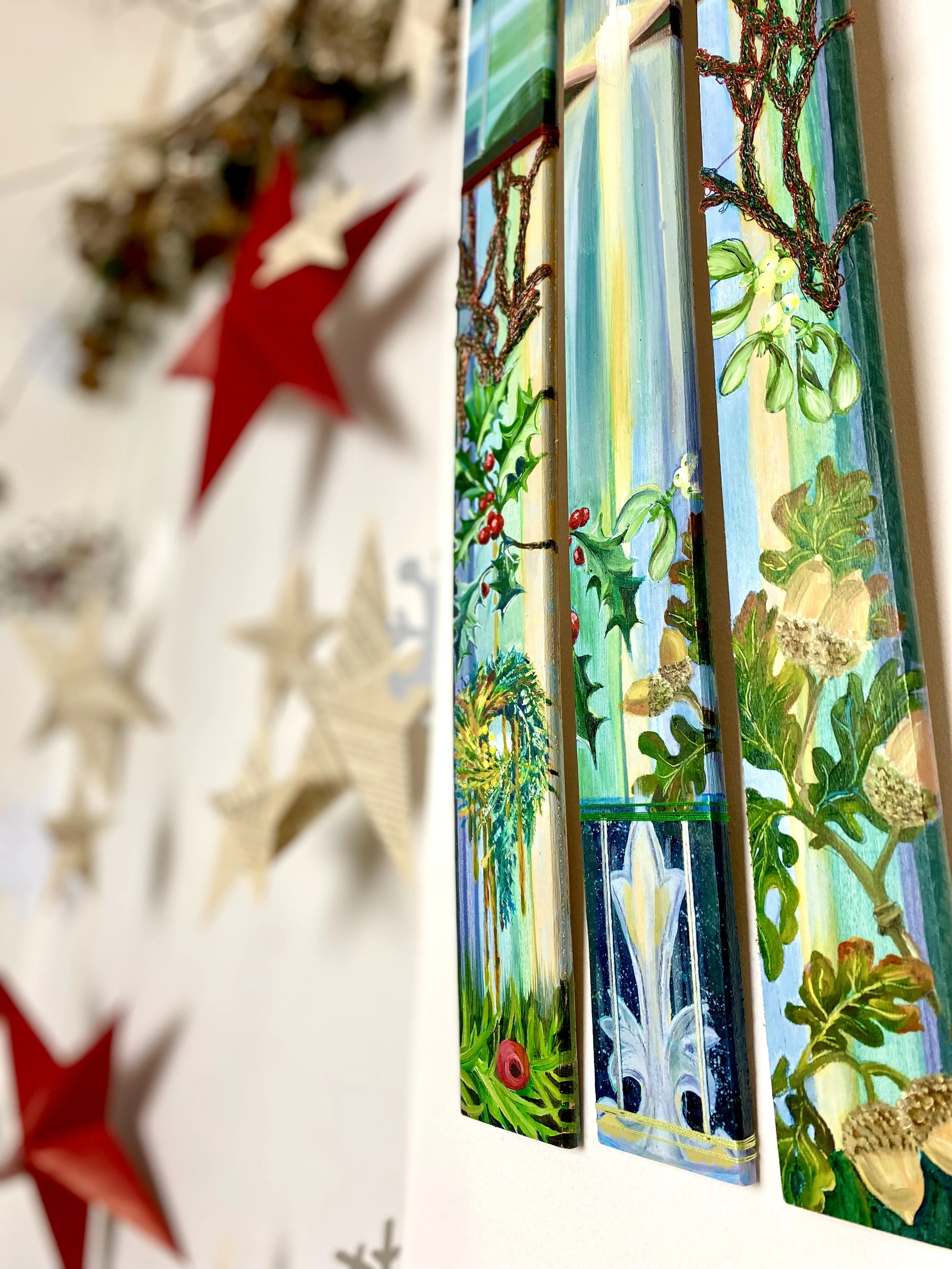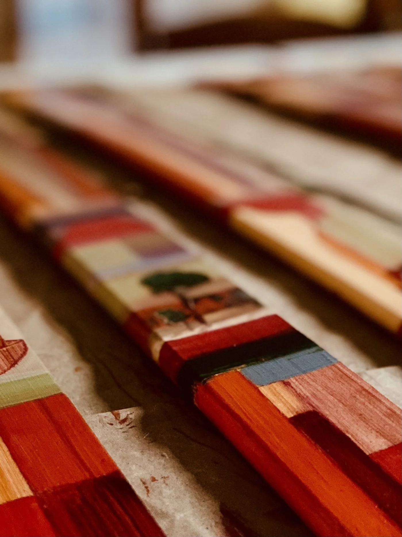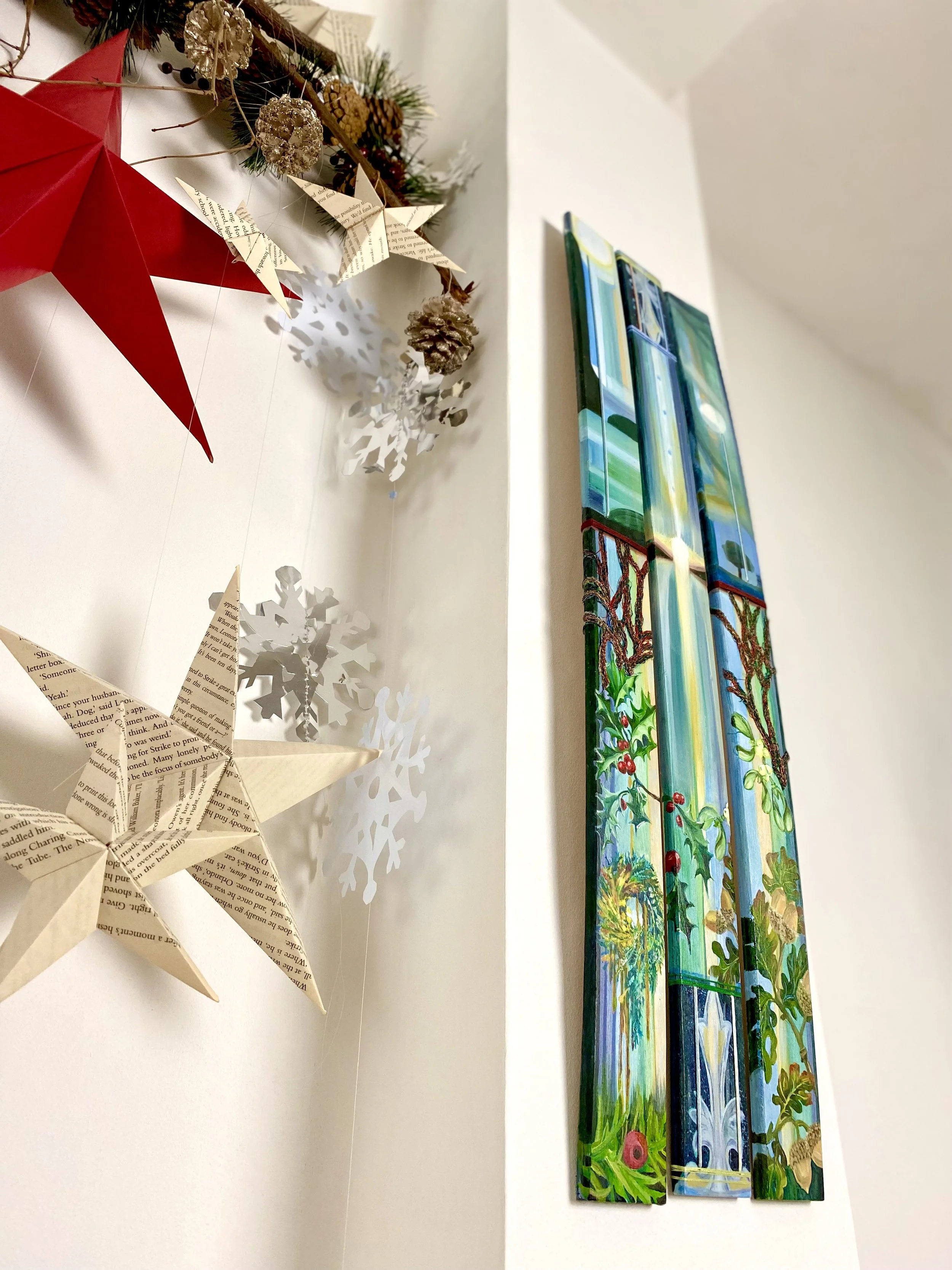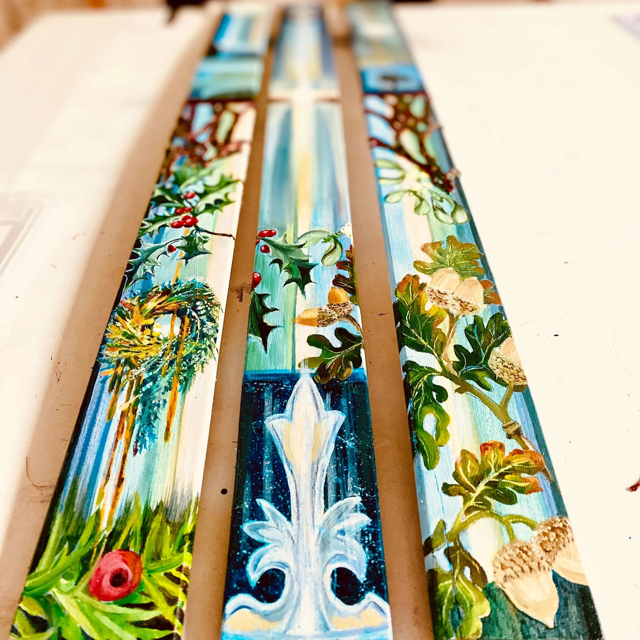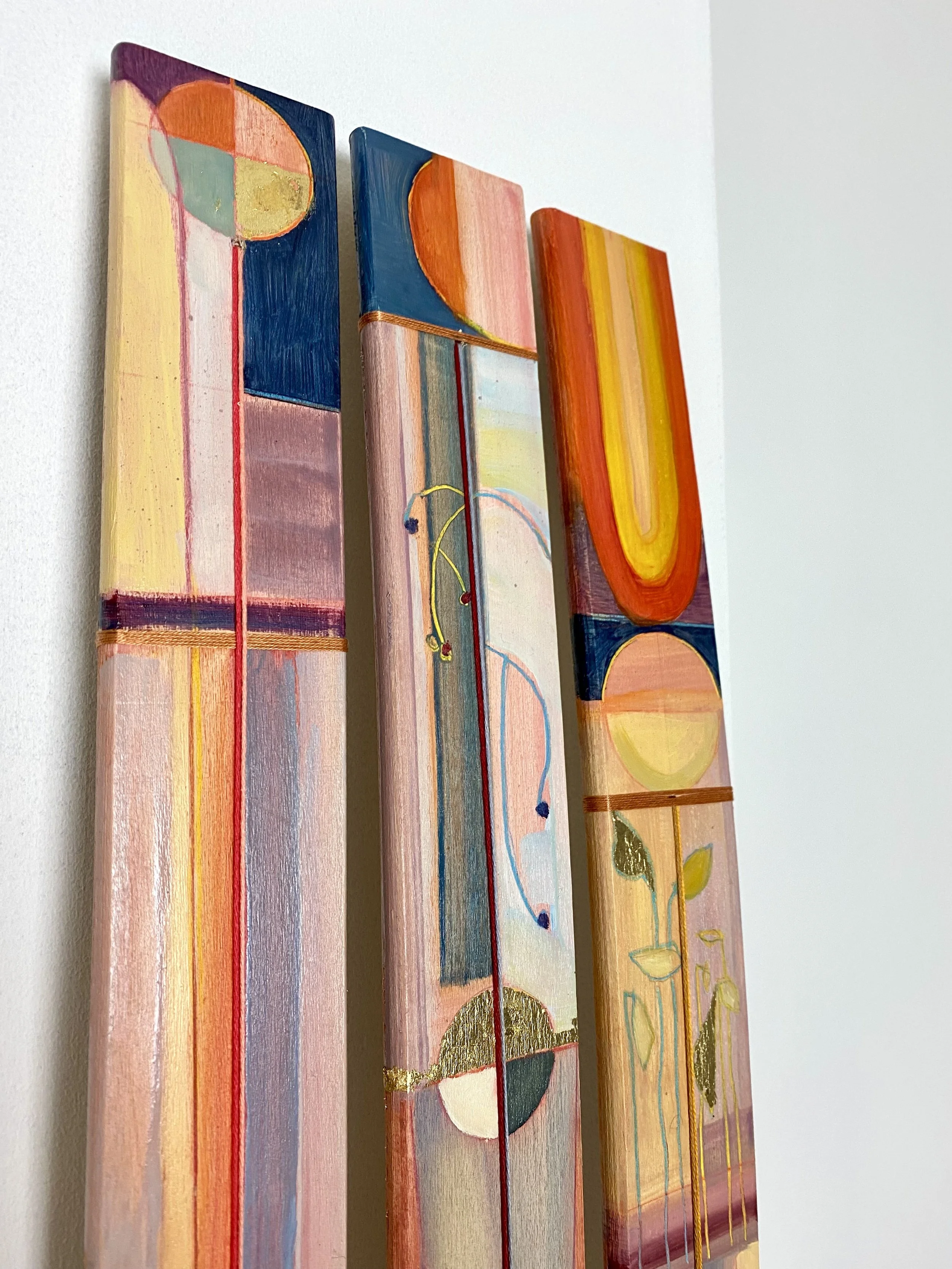 Welcome! I create hand-painted, hand-stitched artworks that weave together reclaimed materials, natures cycles and human stories. Each piece is a tactile reminder of the quiet beauty we find when we connect with earths landscapes. Designed for places that value sustainability, individuality, and soulful decor.